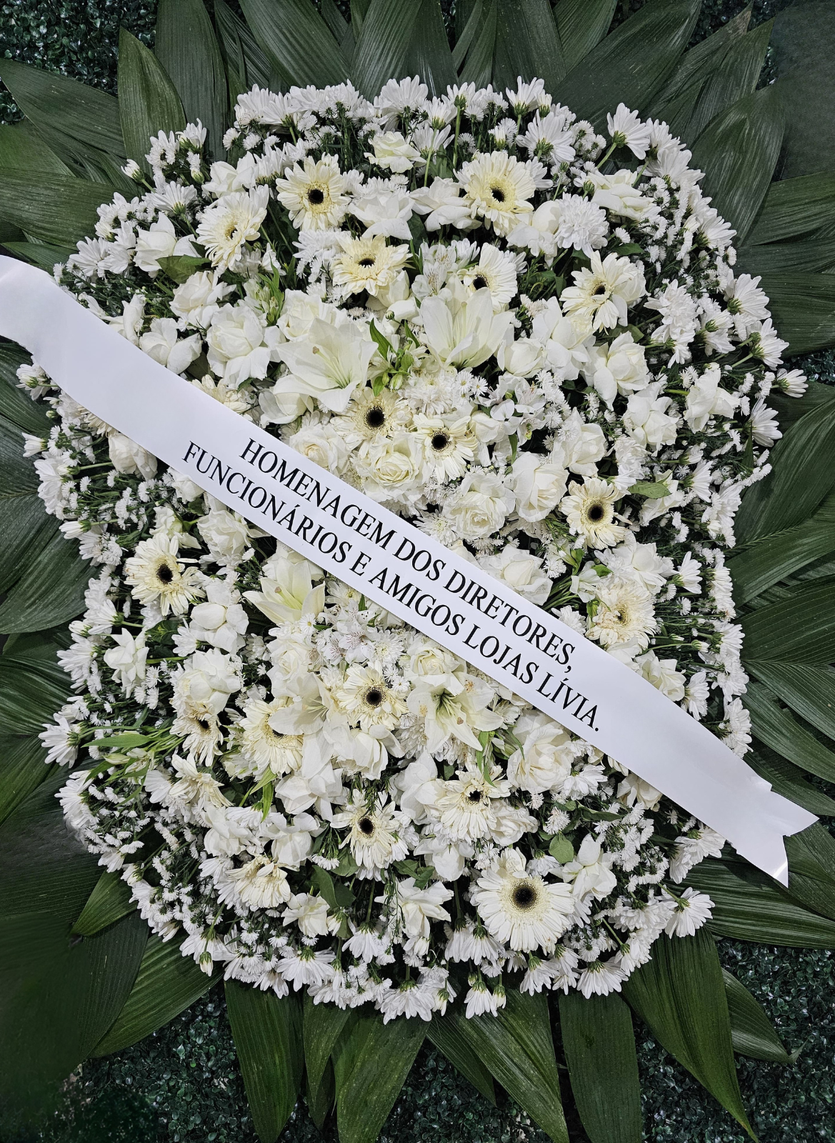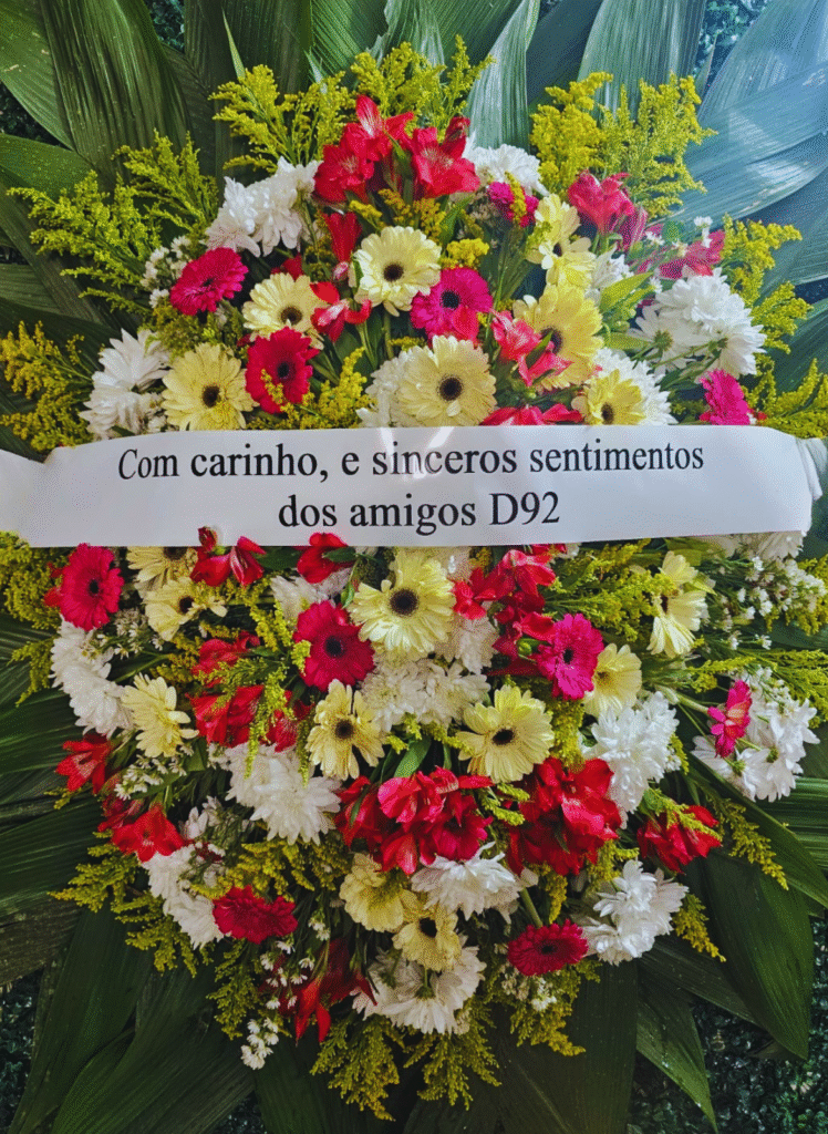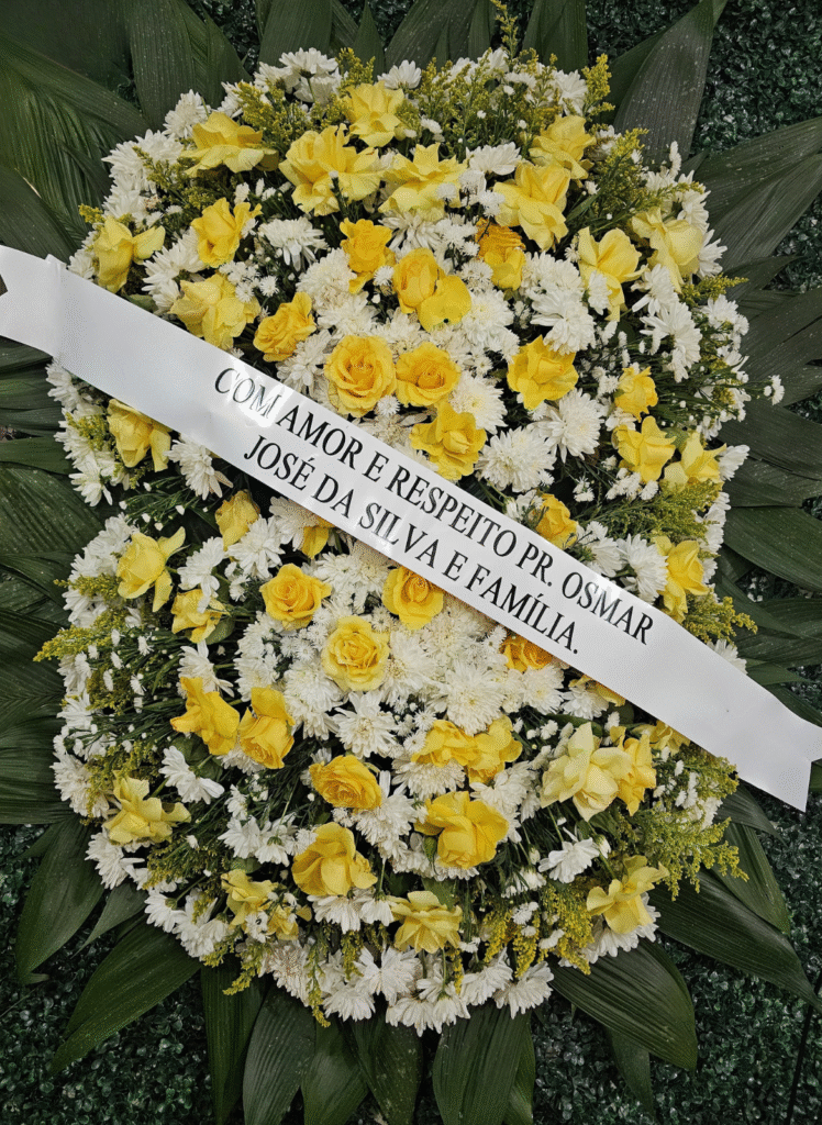 Se houver dúvidas sobre a redação, ortografia de nomes ou títulos, o time valida a grafia antes da produção, enviando confirmação quando necessário em pedidos urgentes. Também é possível solicitar ajustes de última hora enquanto a coroa ainda está em montagem, desde que a alteração não comprometa o horário de entrega. Para empresas e instituições, podem ser incluídos elementos padronizados, como siglas e departamentos, mantendo o padrão visual. Ao final, a faixa é fixada com cuidado para permanecer visível e íntegra durante todo o velório, refletindo a homenagem com respeito, sobriedade e a identidade de quem envia.